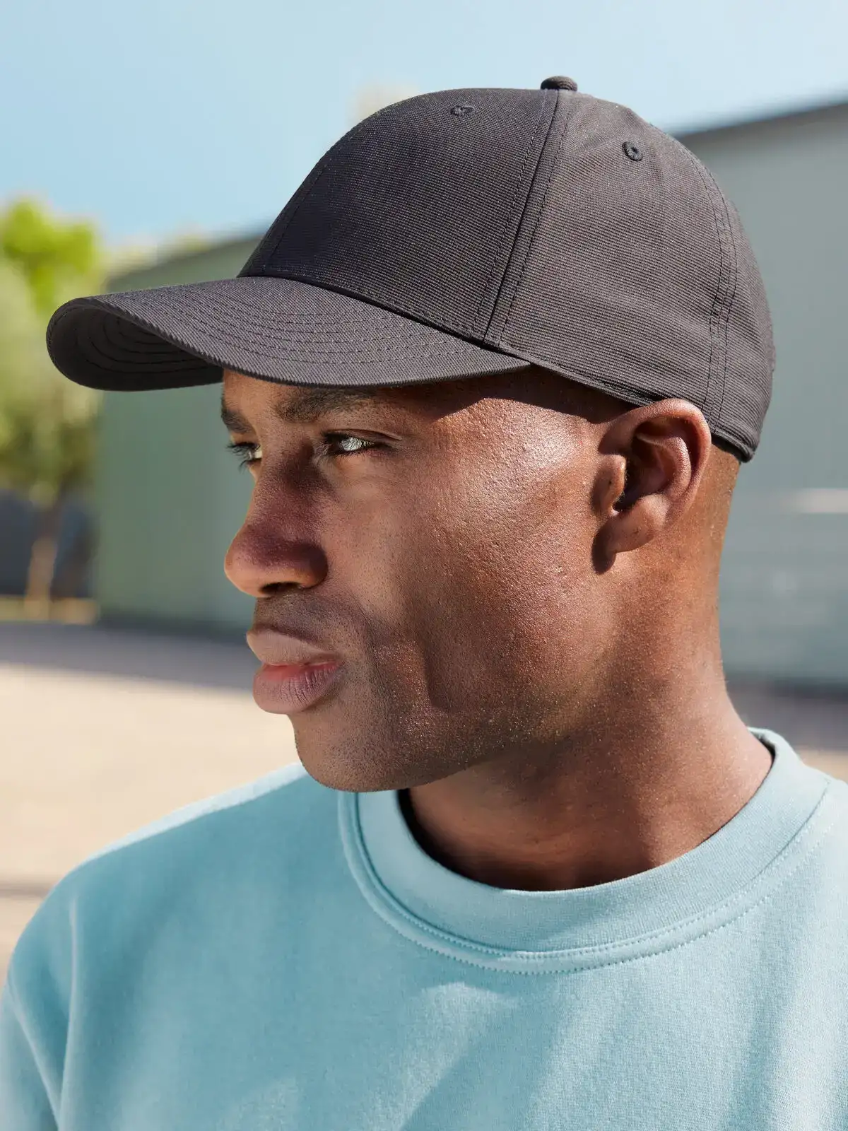 100% cotone organico. Cappellino a 6 pannelli con superficie non spazzolata, 6 fori di aerazione ricamati, 6 cuciture decorative sulla visiera, pannelli frontali aderenti alla fronte, comodo da indossare grazie alla fascia antisudore imbottita, chiusura con fibbia metallica in argento opaco.