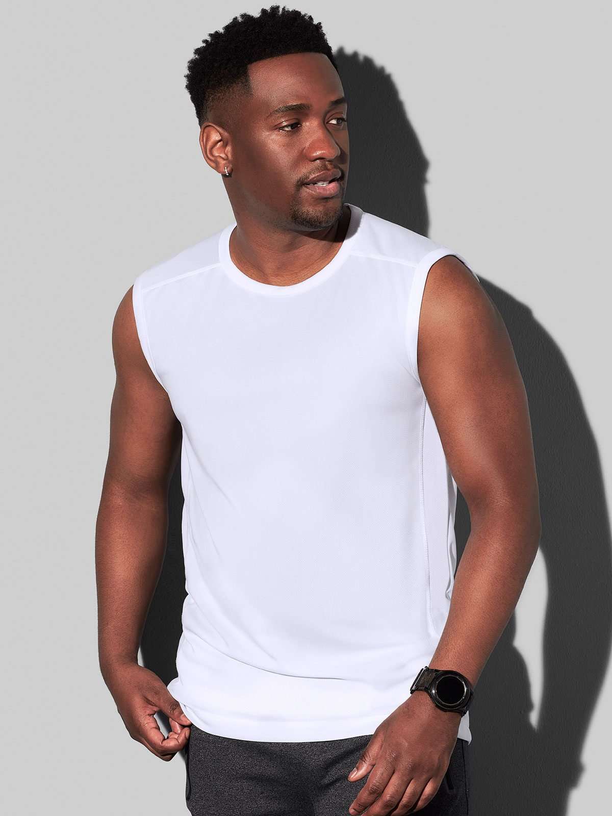 100% poliestere Active-DRY°. Canotta con girocollo e giromanica bordati, struttura con pannelli laterali, etichetta strappabile, traspirante e ad asciugatura rapida, cuciture piatte.