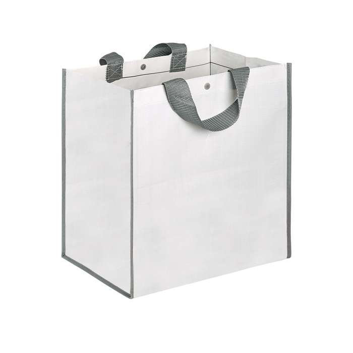 borsa shopping con soffietto ; chiusura con bottone ; manici in nylon ; tecnica di stampa consigliata: serigrafica
