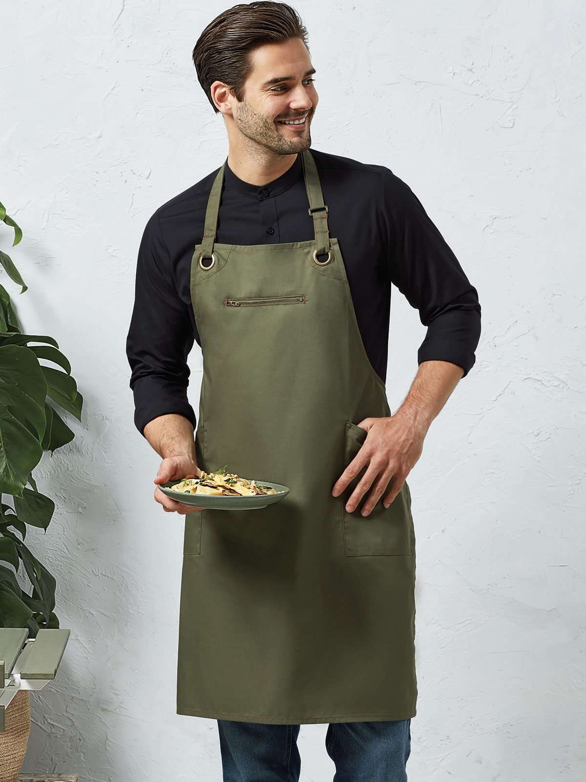 'Barley' Contrast Stitch Sustainable Bib Apron - Premier
