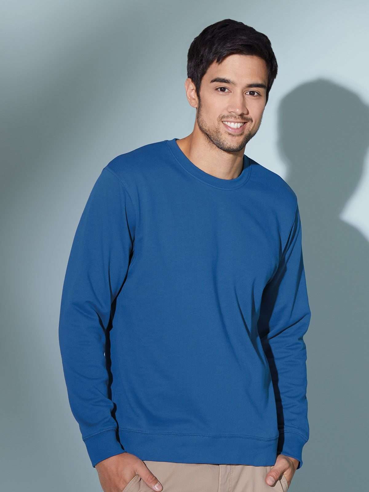 100% cotone. Felpa classica in french terry, French terry di alta qualità, sgarzata, Bordino con elastan, necktape, Cuciture doppie sul collo, sulle maniche e sul bordino, Tessuto esterno (300 g/m²). Manica lunga, collo rotondo