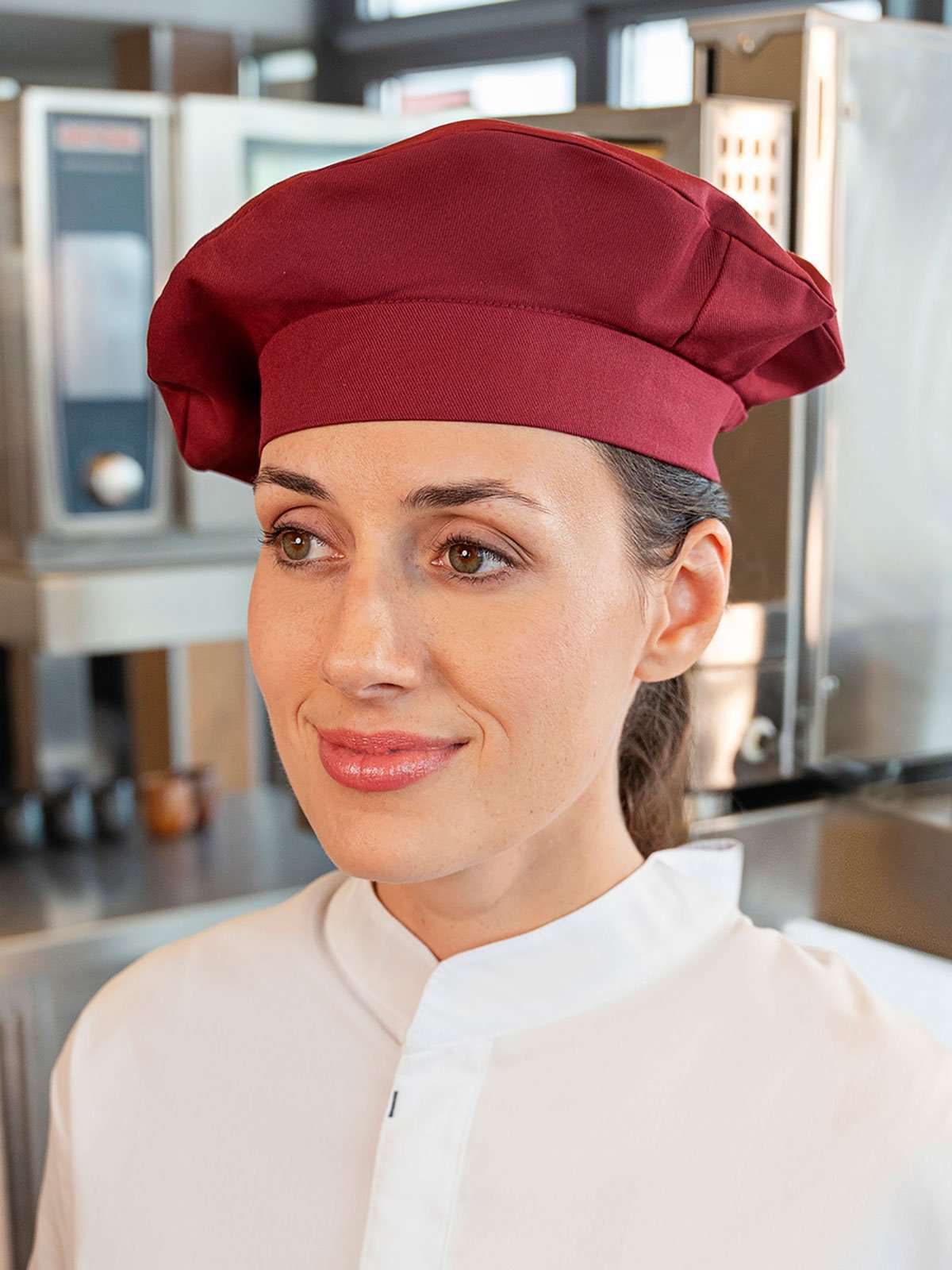 100% cotone. Berretto a Basco Luca, 230 g/m², irrestringibile, non stinge. Fascia elastica sul retro del capo. Lavabile a 95°C. Taglia unca.