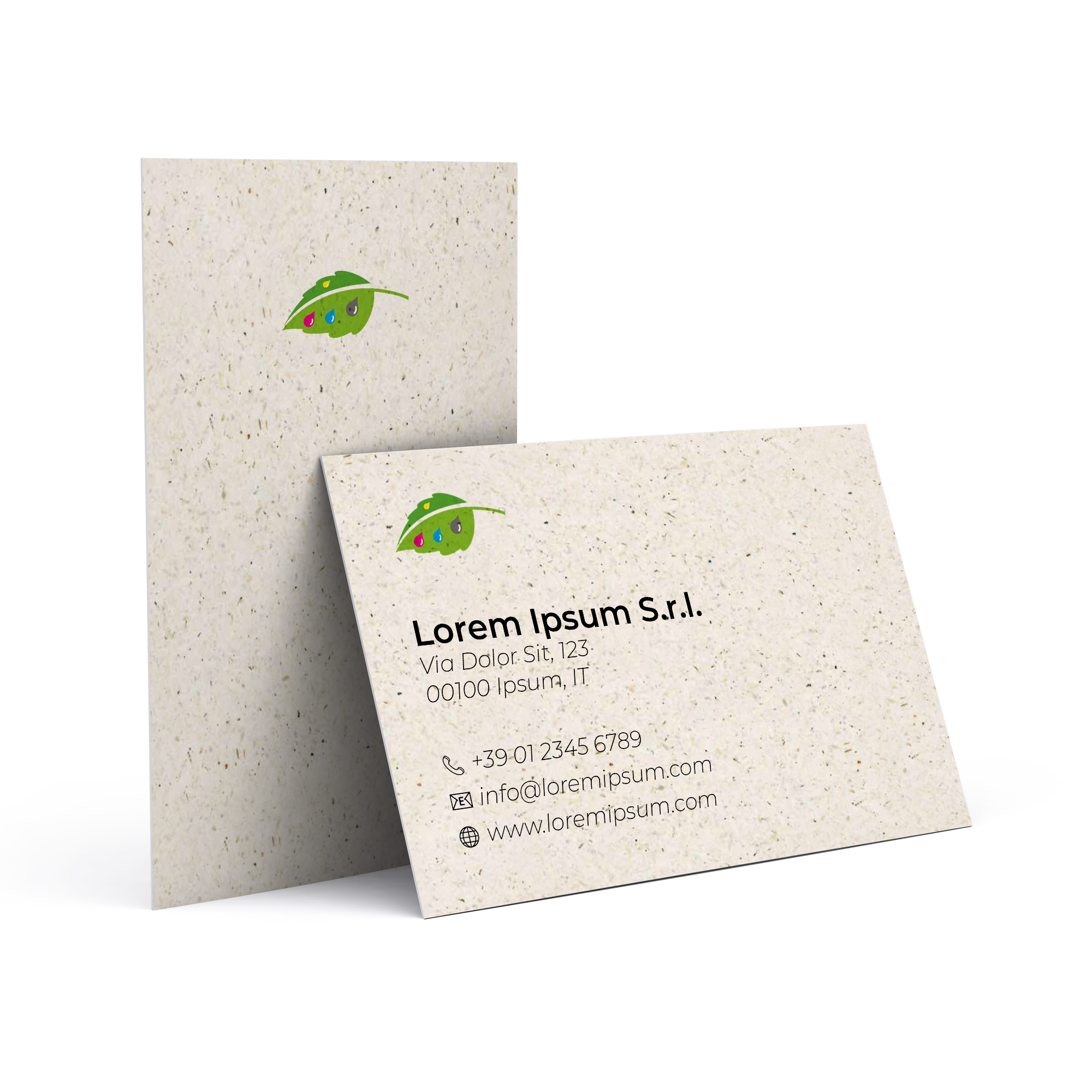 Ci tieni ad essere rispettoso dell'ambiente? Mostra il tuo amore per la natura con biglietti da visita ecologici in carta naturale o riciclata. Le carte sostenibili non sono solo particolarmente rispettose delle risorse e dell'ambiente. La carta in fibra d'erba, le carte certificate provenienti da una silvicoltura responsabile o la carta riciclata Premium Gmund sono ora davvero chic e personalizzabili in base alle tue esigenze. Così i tuoi biglietti da visita potranno distinguersi dalla concorrenza.diversi materiali disponibilistampabili a 4 colori su fronte e retro o solo sul frontepossibilità di stampare più motivi grafici con un unico ordinecarte certificate, carte riciclate e alternative sostenibili come la carta in fibra d'erbaa seconda della configurazione con certificato FSC®/PEFCa partire da 10 esemplari scopri l’intera gamma di Rifiniture e materiali esclusiviConsiglio: a seconda della configurazione con certificazione FSC® o PEFC e posizionamento automatico del logo FSC® o PEFC (opzione selezionabile nell'ultima fase del processo di ordinazione). Ulteriori informazioni su FSC® o PEFC (Codici di licenza: FSC-C155353 / PEFC/04-31-3266).