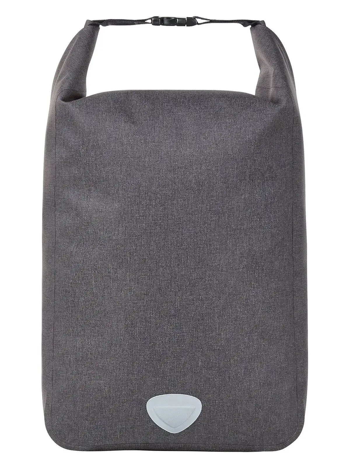 100% Poliestere 600D. Borsa da bicicletta con ampio scomparto principale, grande tasca interna con chiusura lampo, chiusura roll-top. Cuciture saldate per una protezione ottimale da pioggia e umidit??, protezione di fondo e bordi. Supporto regolabile per il fissaggio al portapacchi della bicicletta, con chiusura a torsione e chiusura con velcro sul retro della borsa per un fissaggio ulteriore, applicazione riflettente decorativa, con manico.