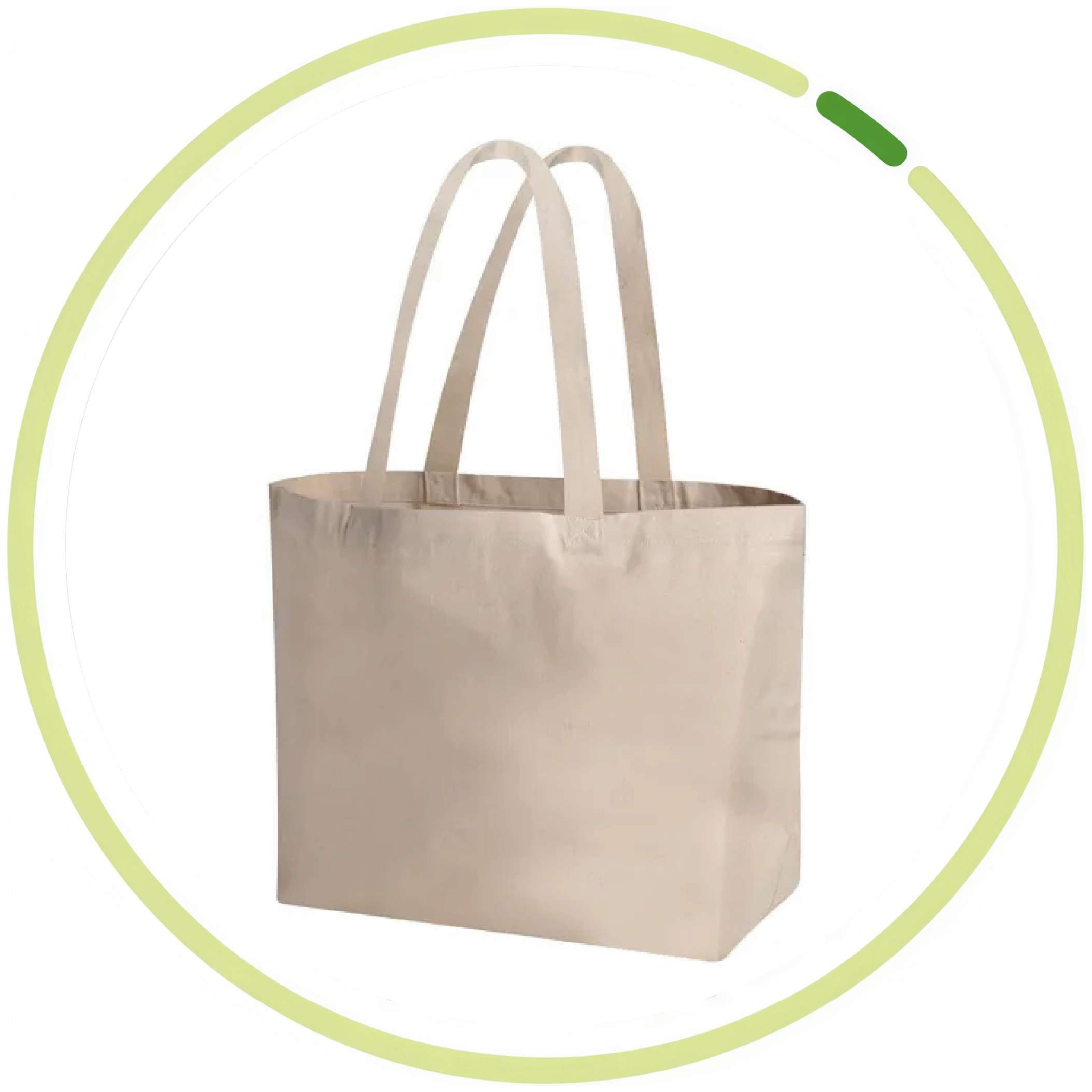 100% Misto cotone e poliestere riciclati. Borsa realizzata con un mix di cotone riciclato e poliestere riciclato 100% rPET, equivalente a 3.5 bottiglie di plastica, grande capienza, etichetta removibile.