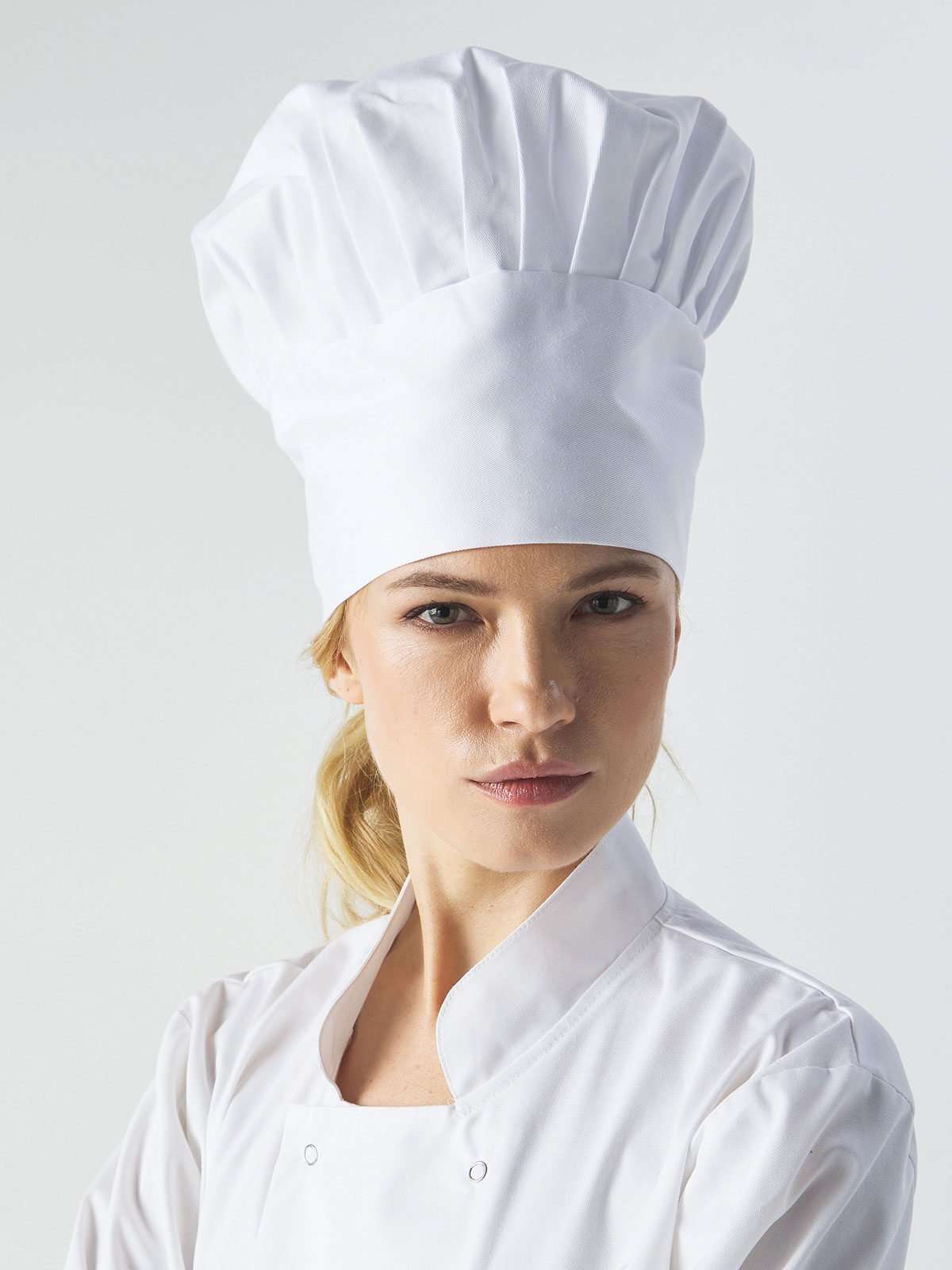 80% poliestere, 20% cotone. Cappello da Chef elasticizzato sul retro. Lavabile a 40°C.