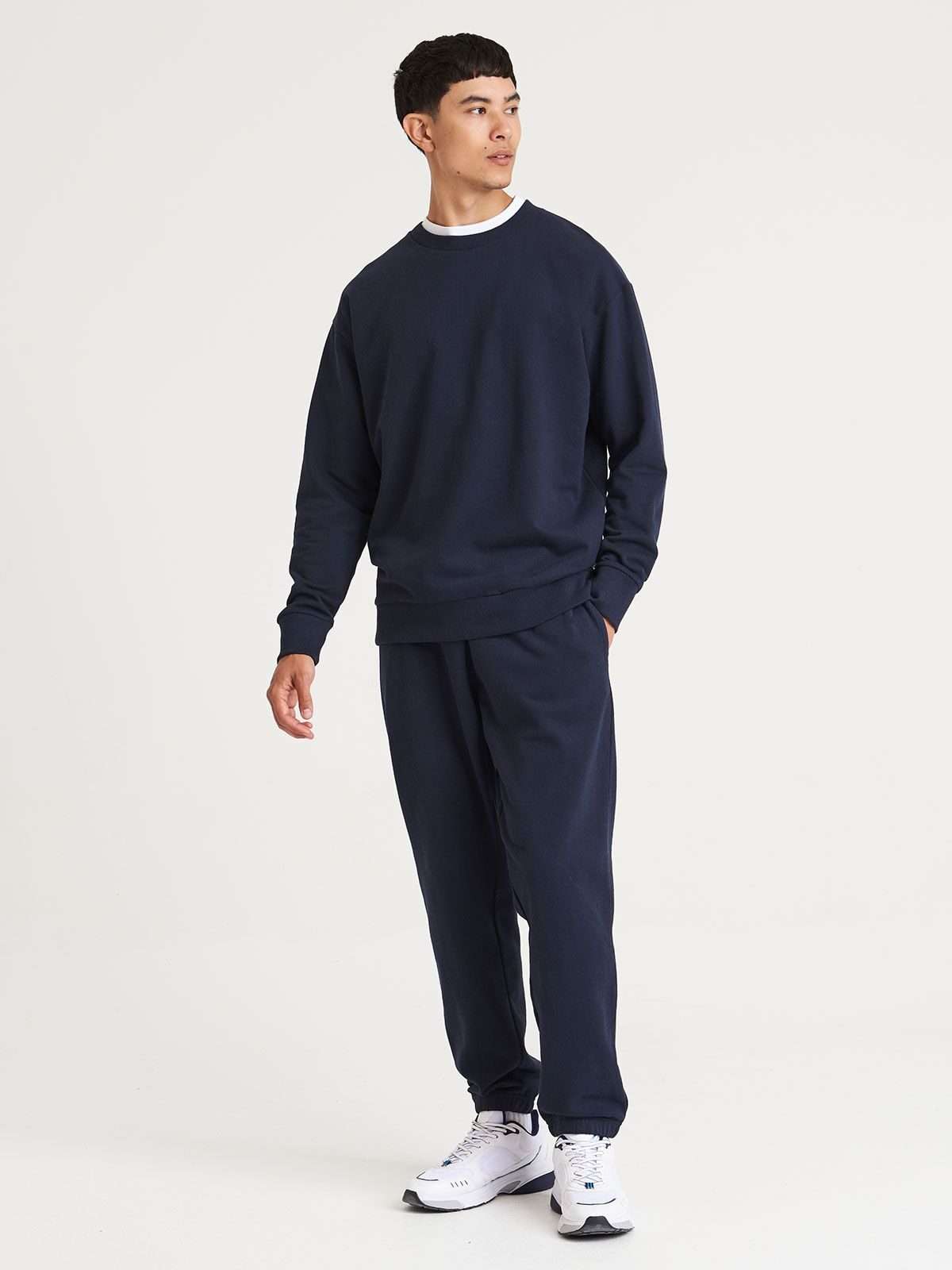 70% cotone riciclato, 30% poliestere riciclato. Pantaloni unisex in felpa, morbidi sia al tatto che nella vestibilità. Tasche laterali, polsini a costine. Abbinabili alla felpa girocollo EA032 e felpa cappuccio EA042.