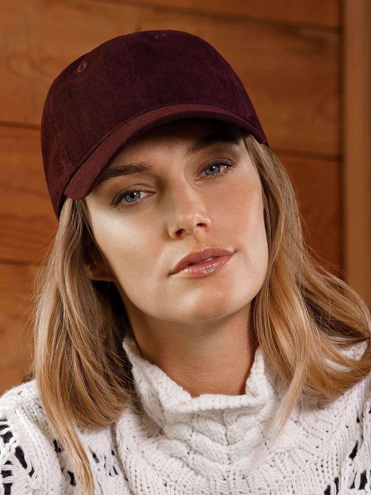 100% velluto a coste di poliestere riciclato. Cappello da baseball destrutturato a 6 pannelli in velluto a coste di poliestere riciclato 21 wales con visiera media e chiusura con fibbia in metallo con foro in metallo, occhielli cuciti, etichetta removibile. Look vintage e calda sensazione al tatto. Vecchio codice: ATCREEP