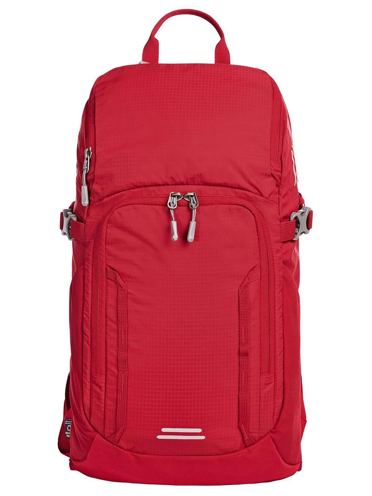 100% RPET 150D/600D Ripstop. Zaino da giorno e da bici leggero e funzionale, schienale imbottito con sistema a nido d'ape, cinturino al torace regolabile in altezza, cinturino in vita, scomparto principale con zip bidirezionale con tasca a inserto piatta interna, uscita posteriore per cuffie, diverse tasche, cinghie laterali, fascia con cinghia Molle sulla tasca anteriore, stampa riflettente, manico.