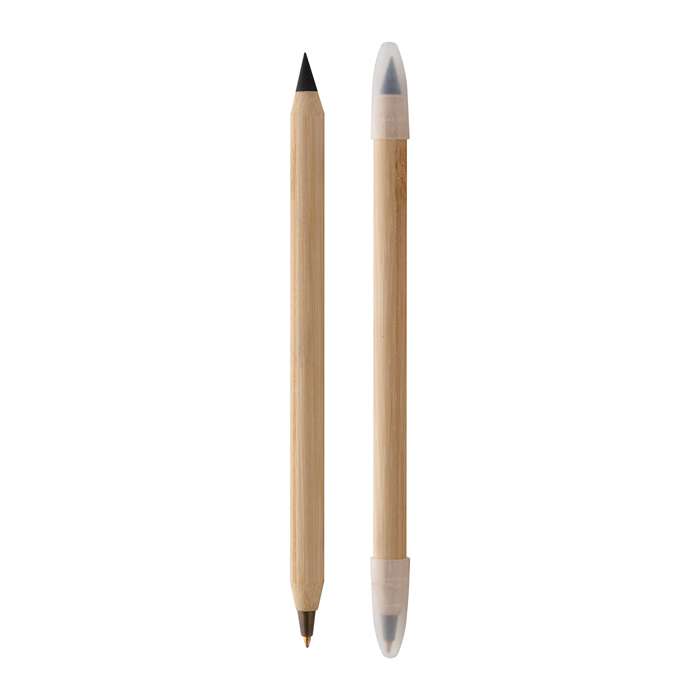 matita inesauribile e sfera ; fusto in bamboo ; cappuccio trasparente ; refill nero