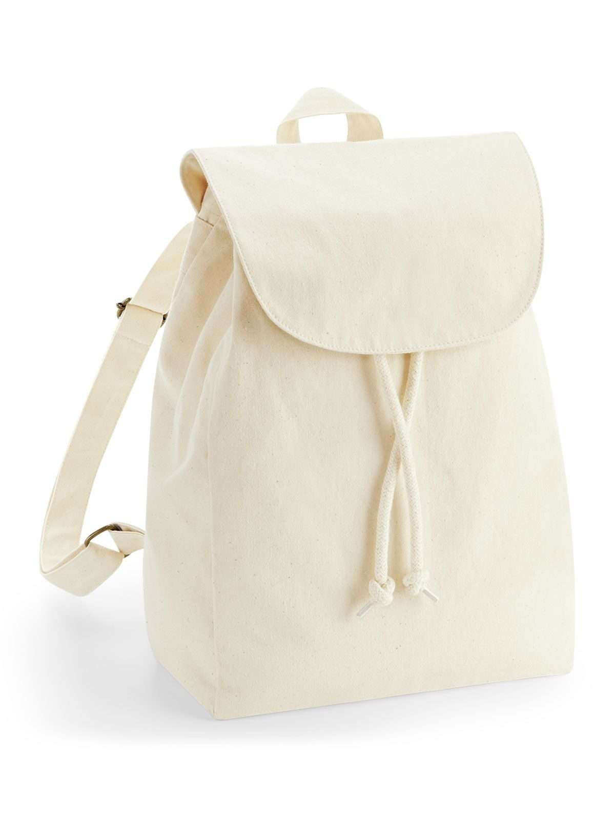 100% cotone canvas organico. Zaino in tessuto resistente di ottima qualità. Patta ripiegabile con bottone a pressione, chiusura con cordino. Spallacci regolabili in tessuto, manico. Etichetta removibile. Prodotto certificato GOTS e OCS - CU811033.