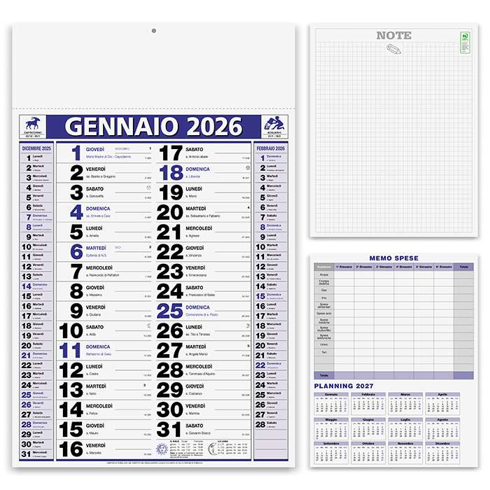 Edizione 2024 ; olandese mensile 12 fogli ; carta patinata 70 gr. ; testata termosaldata ; festività internazionali ; pagina note stampata sul retro ; memo spese in ultima pagina ; tecnica di stampa consigliata: adesivo digitale - serigrafica