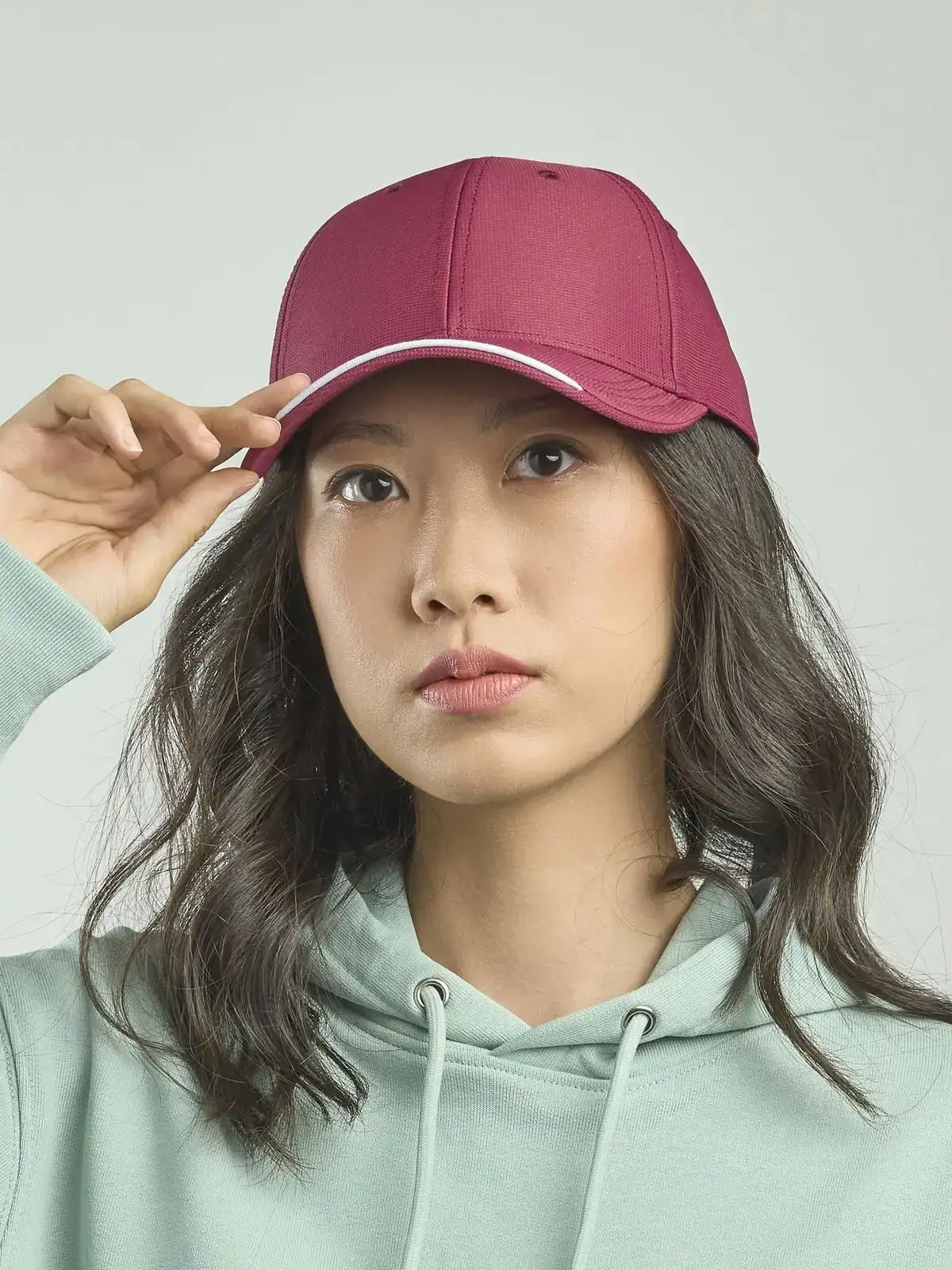 100% poliestere. Cappellino a 6 pannelli, occhielli ricamati, pannello frontale rinforzato, visiera pre-curvata, chiusura in velcro, 4 cuciture su visiera, parasudore in poliestere, piping in contrasto, etichetta removibile, taglia unica.Nuovo codice: ATESTS
