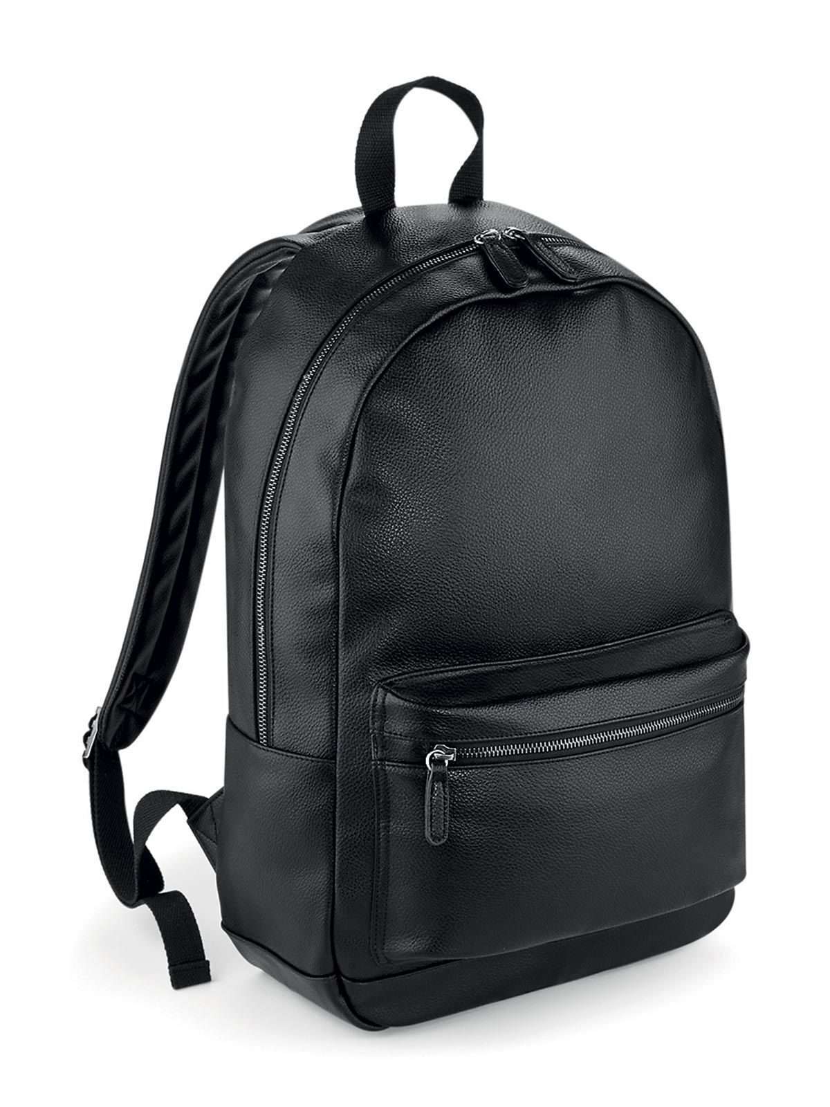 100% finta pelle. Zaino con compartimento principale e tasca frontale con cerniera, tasca interna, pannello posteriore e bretelle imbottiti. Dimensioni: 31 x 47 x 16 cm, capacita': 18 litri, area di stampa: 21 x 15 cm.