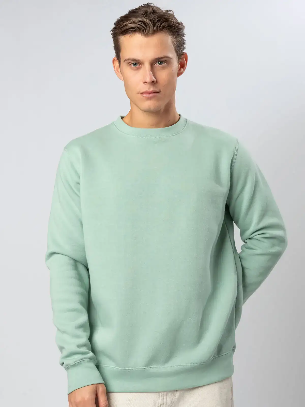 70% cotone, 30% poliestere. Felpa girocollo, felpata internamente. Collo, polsini e orlo inferiore in costina, rinforzo sul colletto, maniche set-in, struttura con cuciture laterali. Etichetta strappabile. Tessuto PST: interno in poliestere ed esterno 100% cotone.