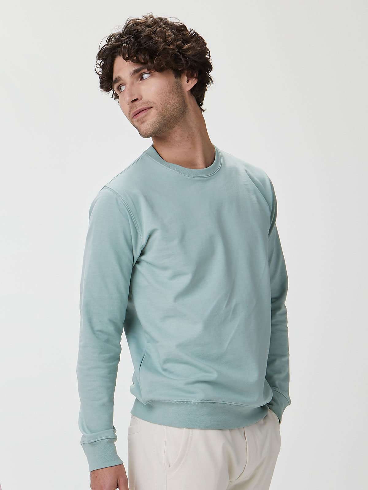 70% Cotone, 30% Poliestere. Felpa girocollo con interno felpato per maggiore morbidezza e calore. Collo, polsini e orlo inferiore in costina, con rinforzo sul colletto e maniche set-in. Struttura con cuciture laterali per una vestibilità confortevole. Dotata di etichetta strappabile. Tessuto esterno: 100% cotone Interno felpato: 100% poliestere