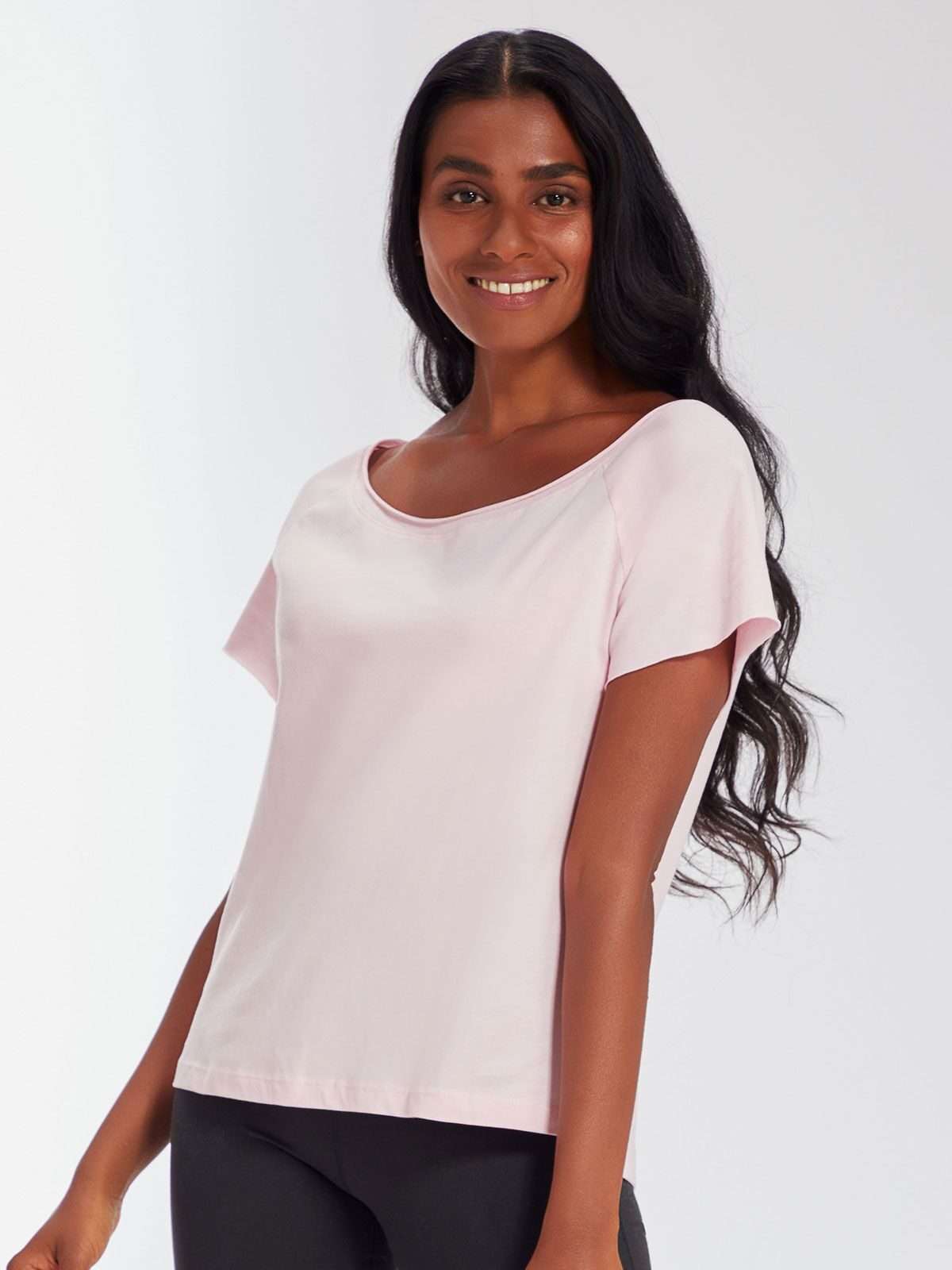 100% cotone organico. Single jersey. T-shirt manica corta raglan, giromaniche con orlo arrotolato, ampia vestibilità, scollatura a taglio vivo, spalla scoperta, spacchetti laterali, etichetta strappabile.
