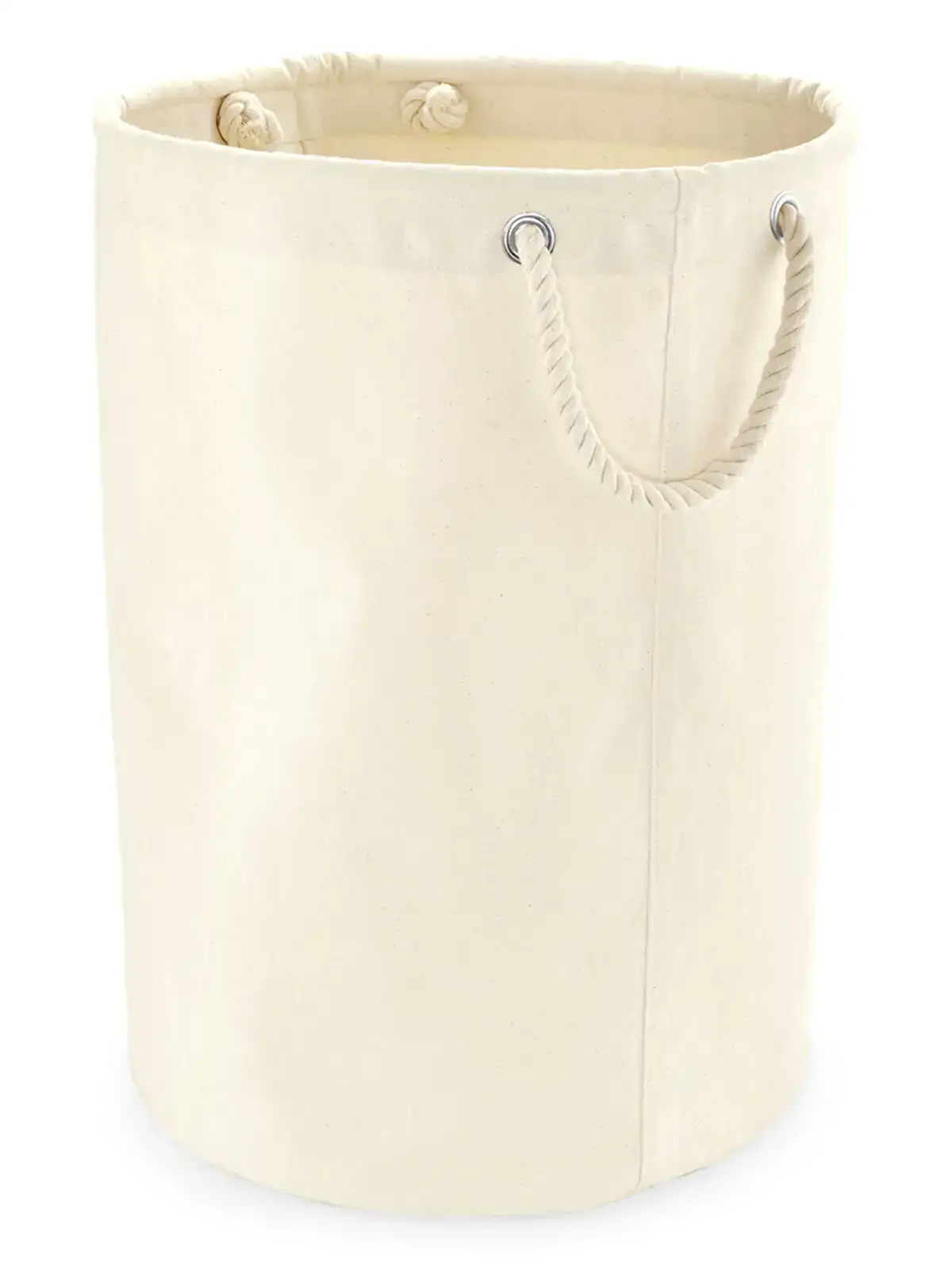 100% cotone canvas. Cesta con struttura solida e resistente, manici in corda per il trasporto. Etichetta removibile. Dimensioni: S: 30x30cm, cap. 21lt. - M: 40x40cm, cap. 50lt. - L: 40x60cm, cap. 75lt.