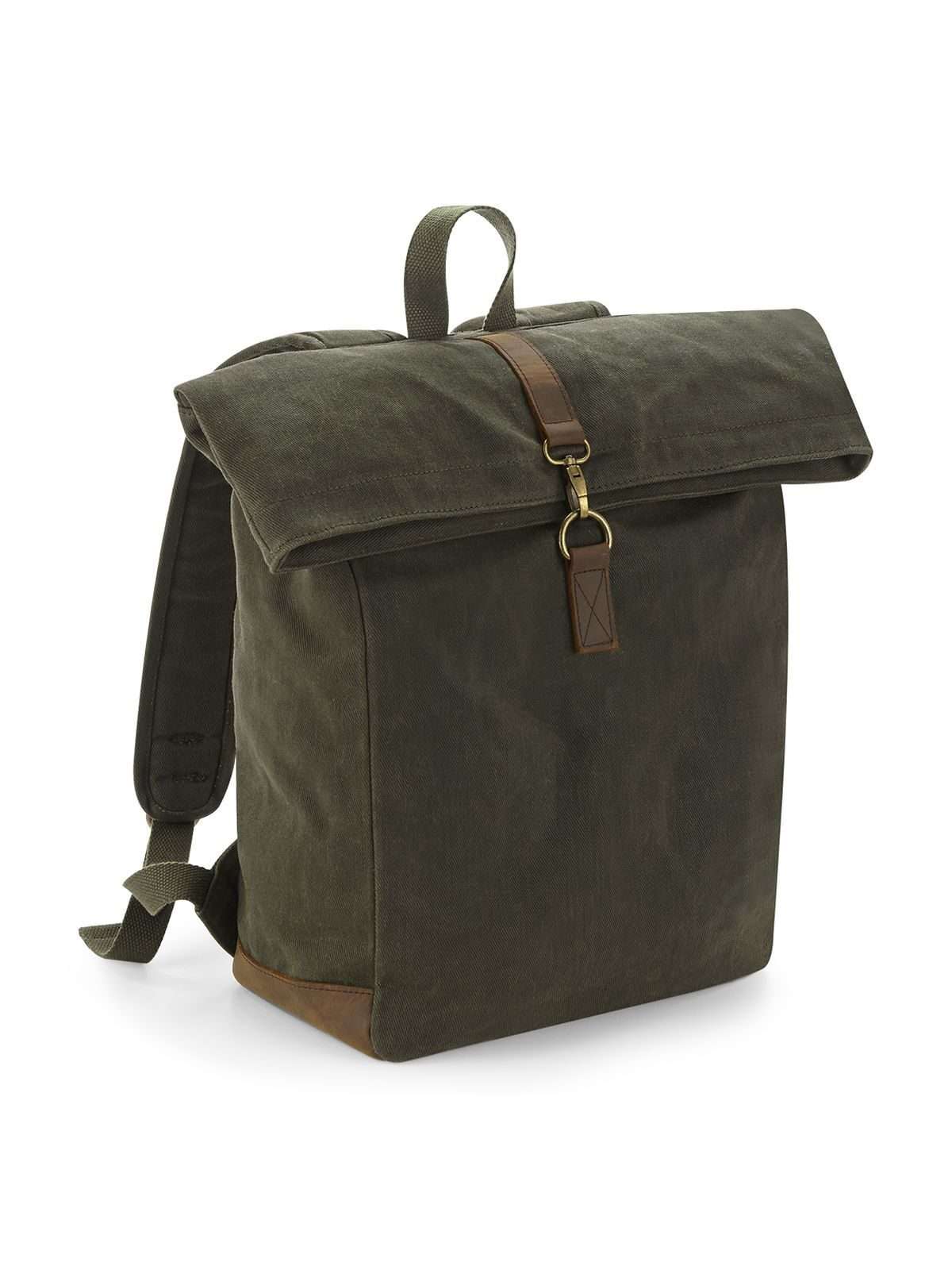 100% cotone canvas cerato resistente all'acqua. Zaino con dettagli in vera pelle, scomparto principlae chiusura zip, interno foderato, può contenere laptop fino a 15.6", manico in cotone, pannello posteriore imbottito. Dimensioni: 53x31x14 cm, capacità: 9 litri, area stampabile: 22x16 cm.