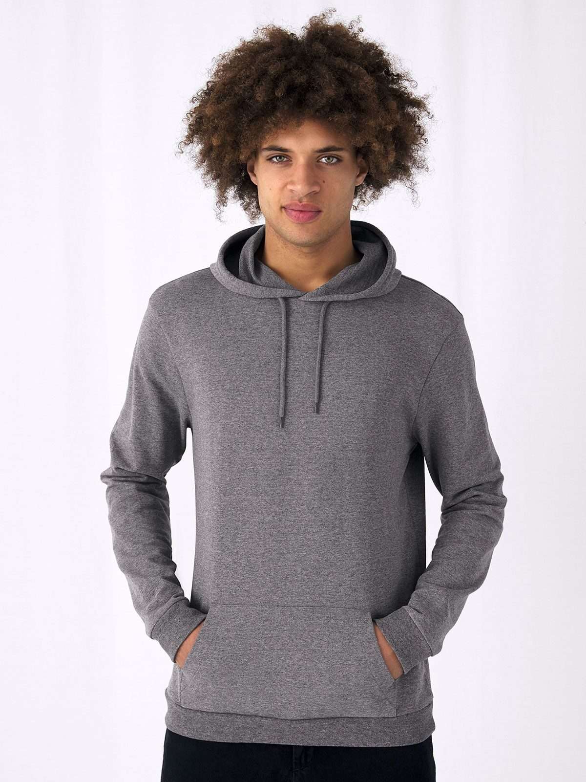 80% Cotone ring-spun preristretto, 20% Poliestere. Felpa con cappuccio minimal, struttura con cuciture laterali e mezzaluna in single Jersey sulla schiena per una facile personalizzazione. Sgarzata internamente, molto morbida e liscia esternamente per una migliore resa di stampa. Nessuna etichetta B&C. Colori Heather: 60% cotone 40% poliestere. Heather Grey: 92% cotone 8% viscosa.