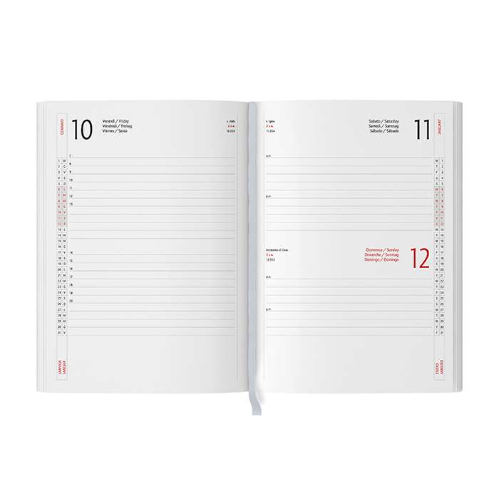 324 pagine sab. e dom. abbinati; taglio naturale; carta bianca con stampa a 2 colori; edizione multilingue: IT-GB-FR-DE-ES-PT; inserti informativi e rubrica telefonica; quadranti cartonati; inserto cartografico; segnapagine