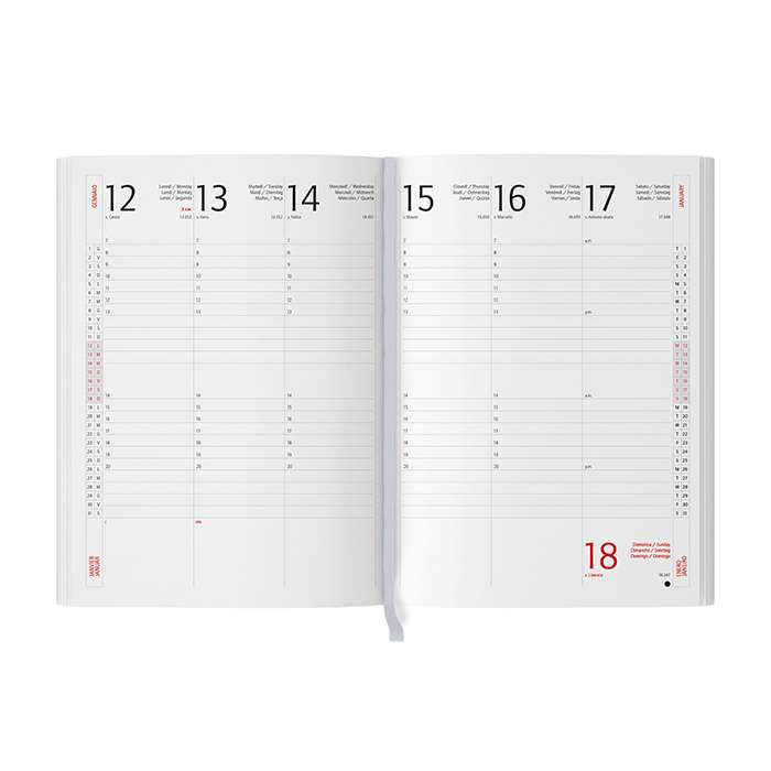 132 pagine; taglio naturale; carta bianca con stampa a 2 colori; edizione multilingue: IT-GB-FR-DE-ES-PT; inserti informativi e rubrica telefonica; quadranti cartonati; inserto cartografico; segnapagine