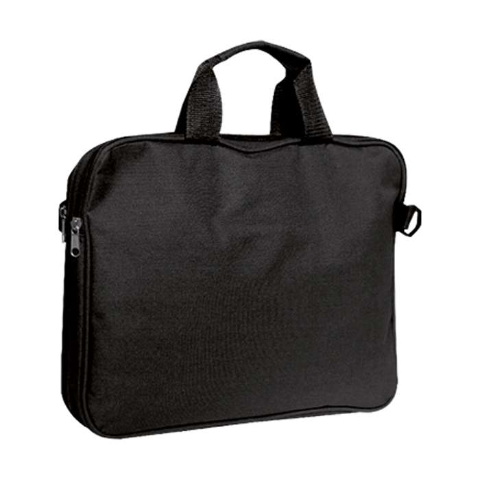 cartella porta documenti in poliestere ex codice N2900; due scomparti interni; tracolla regolabile; manici rinforzati; chiusura con zip; tecnica di stampa consigliata: serigrafica