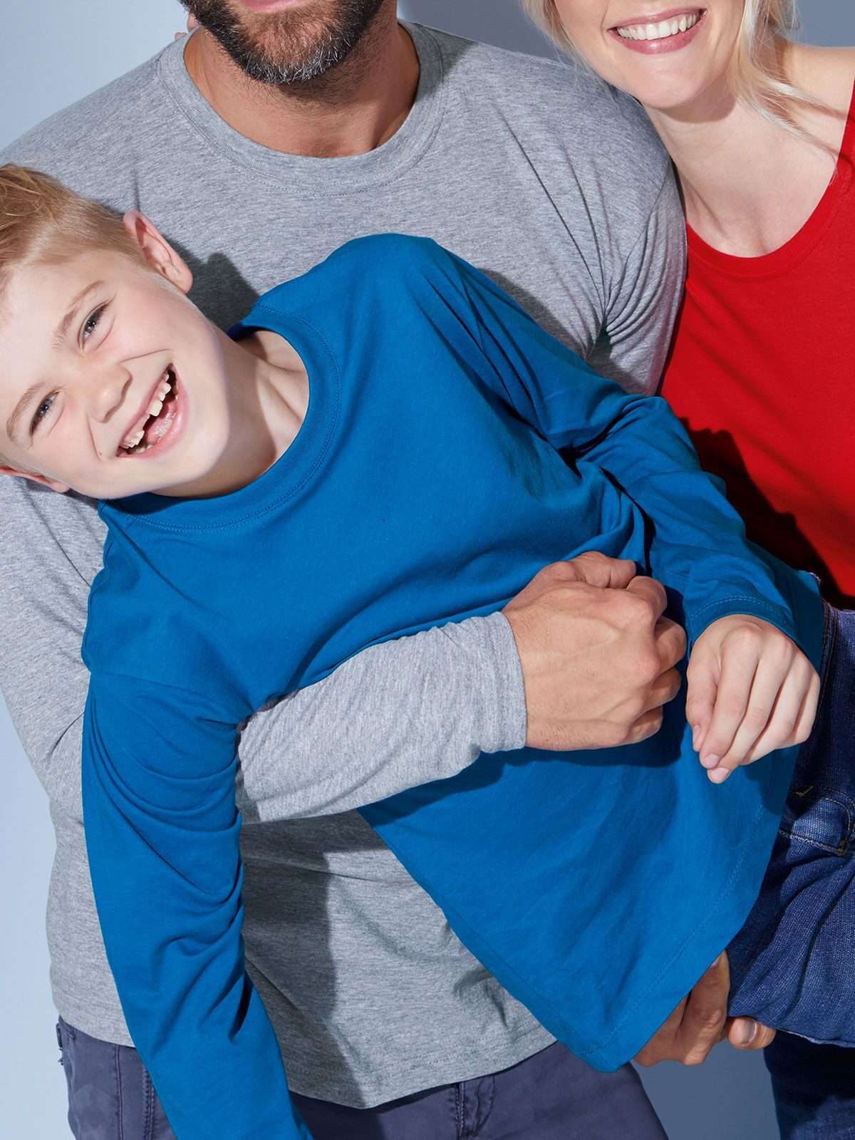 100% cotone. T-shirt manica lunga in single Jersey JN913: Taglio diritto senza cuciture laterali, 1 x 1 girocollo e necktape a costine, Scollo tondo con elastan, cucitura laterale e cuciture a doppio filo sul collo Tessuto esterno (150 g/m²): Bambini, Manica lunga.