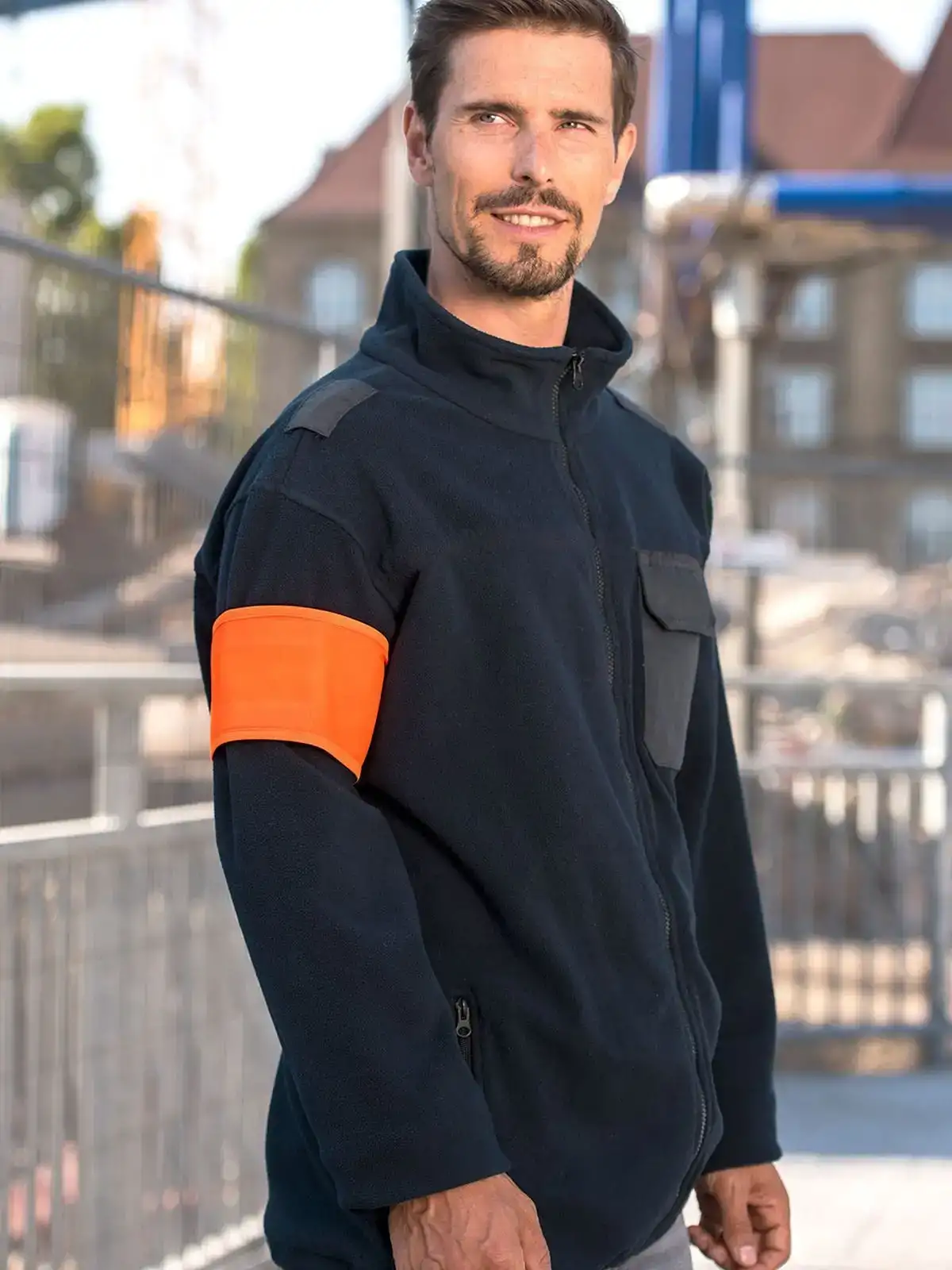 100% poliestere. Fascia da braccio stampabile, taglia unica, regolabile con chiusura in velcro.