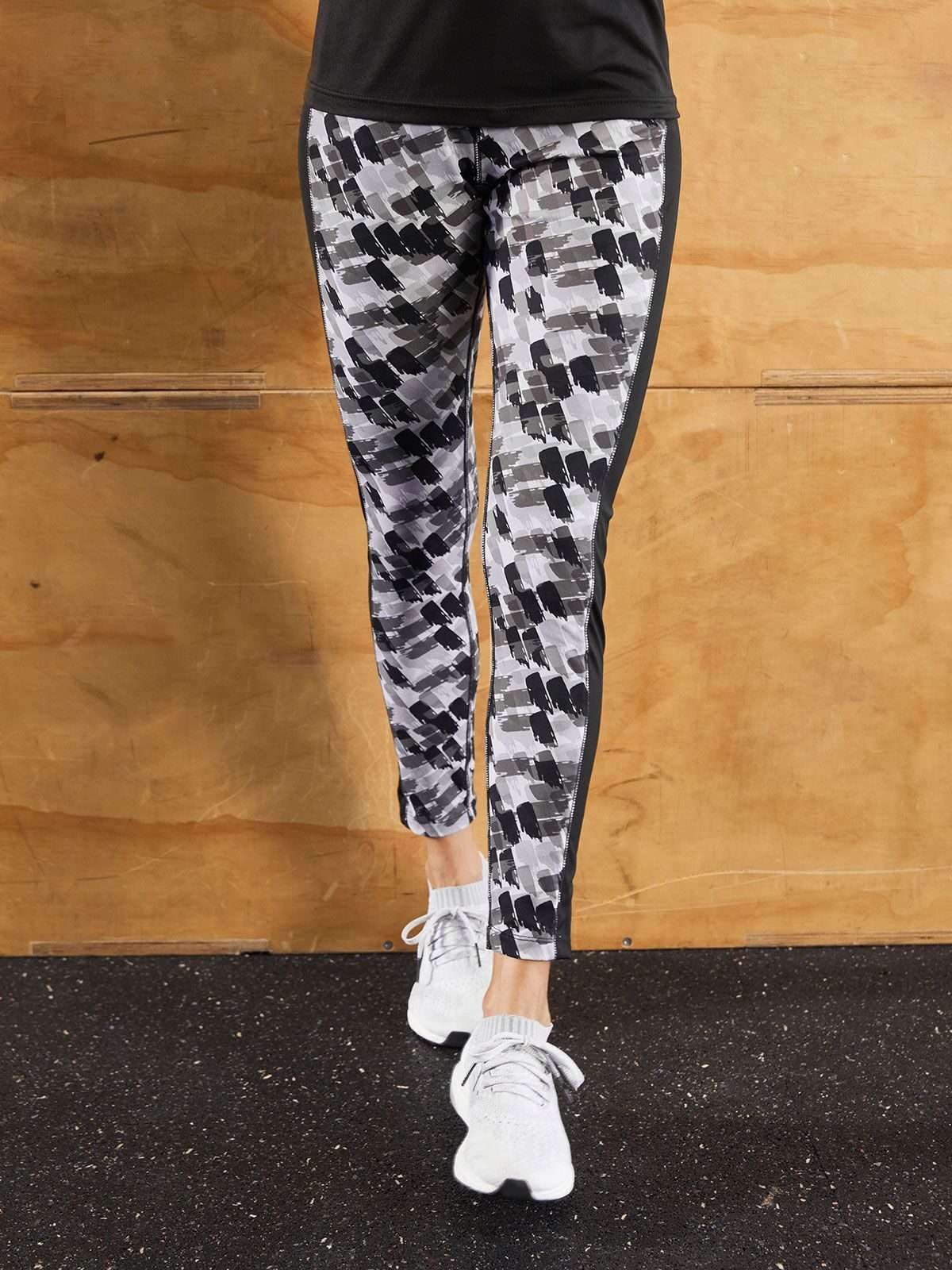 90% poliammide, 10% elastan. Leggings sportivi, tessuto morbido e elastico con elastan, stampa all-over, inserti a un colore sui lati, girovita elastico con cordino, taschino porta chiavi con zip.