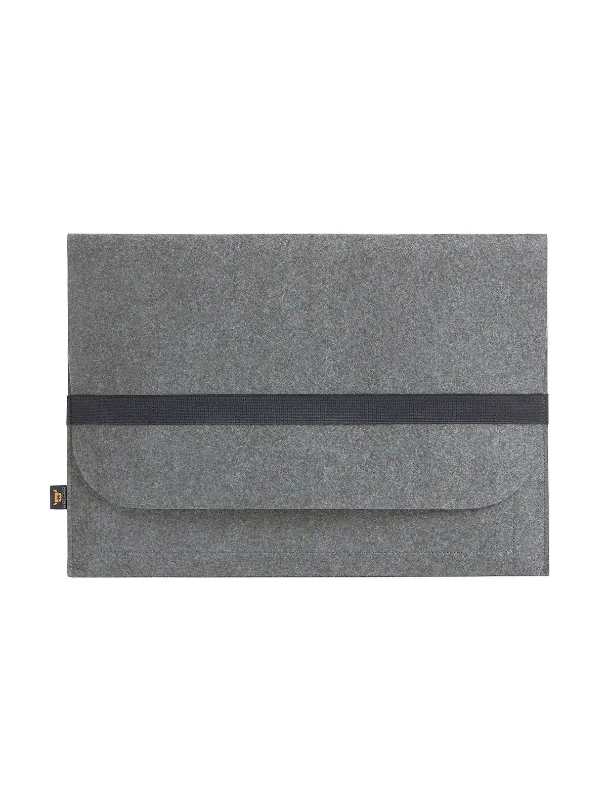 100% feltro. Custodia per laptop, tasca anteriore con chiusura lampo, nastro elastico per chiudere la cartella. Dimensioni: 42x30/54,5 cm. Area personalizzabile: sulla patta 36x18 cm.