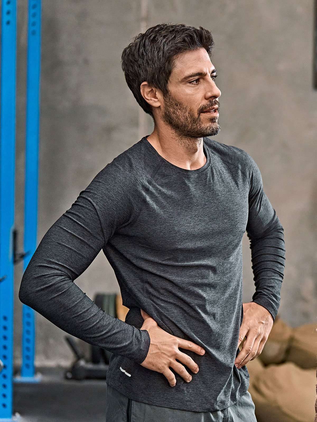 95% poliestere (tessuto COOLdry), 5% spandex. Maglia a manica lunga sportiva unisex, tessuto morbido e leggero, traspirante e a rapida asciugatura, cuciture flatlock, fit sportivo.