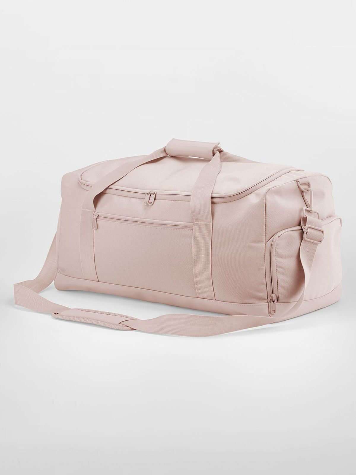 100% poliestere riciclato. Borsone in poliestere riciclato certificato GRS, pannello base rivestito in PU, apertura con due zip bidirezionali, scomparto porta scarpe, tasca frontale con zip, tasca esterna a rete, tasca interna a rete, maniglia imbottita, tracolla regolabile e removibile. Dimensioni: 50x25x26cm, Capacità: 32 litri, Area di stampa frontale: 15x11 cm massimo, superiore: 30x20cm. Etichetta strappabile.