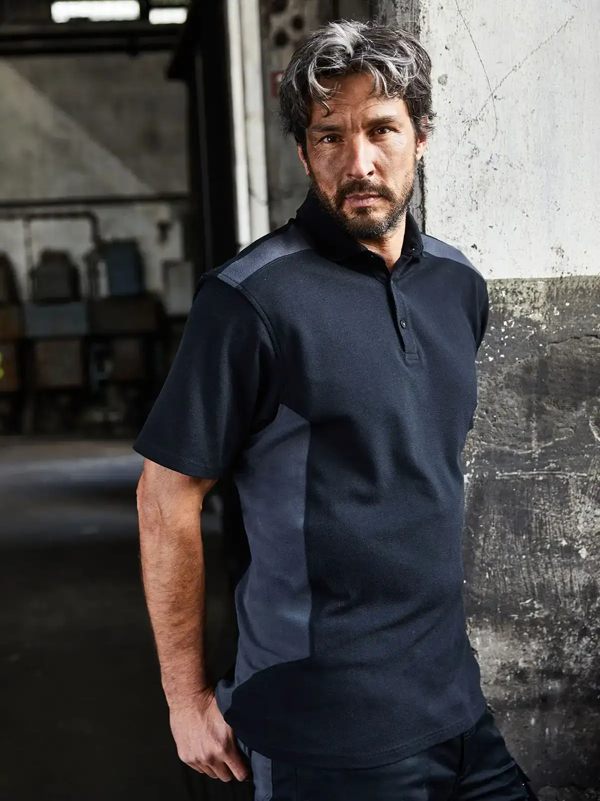 50% cotone organico, 50% poliestere riciclato. Polo easy-care progettata appositamente per il lavoro, realizzata in tessuto robusto con resistenza ottimale ai lavaggi. Dotata di inserti contrastanti su spalle e lati per un tocco di stile. Colletto in maglia e nastro di rinforzo sul collo garantiscono comfort e durata. Pattina a 3 bottoni per un look classico e professionale.