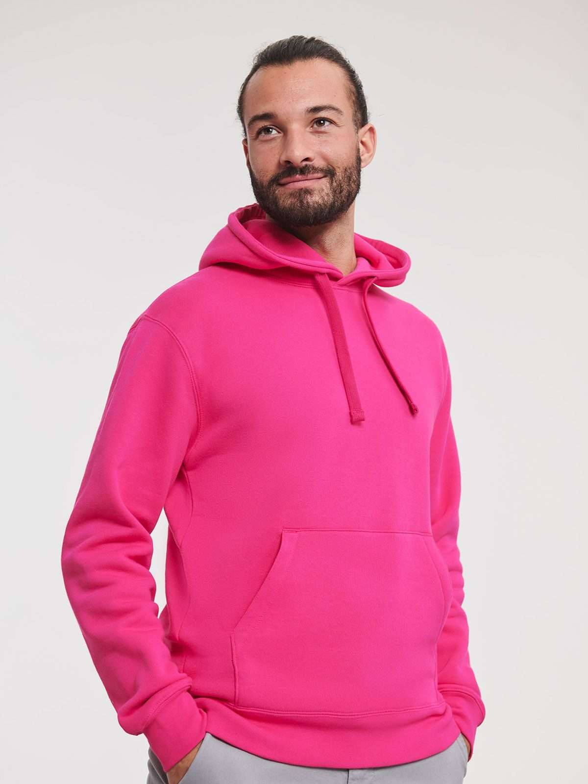 80% cotone, 20% poliestere. Felpa a tre strati con cappuccio e cordoncino piatto, maniche set-in, nastro di rinforzo al collo, passanti per cuffie, felpata internamente, struttura con cuciture laterali.