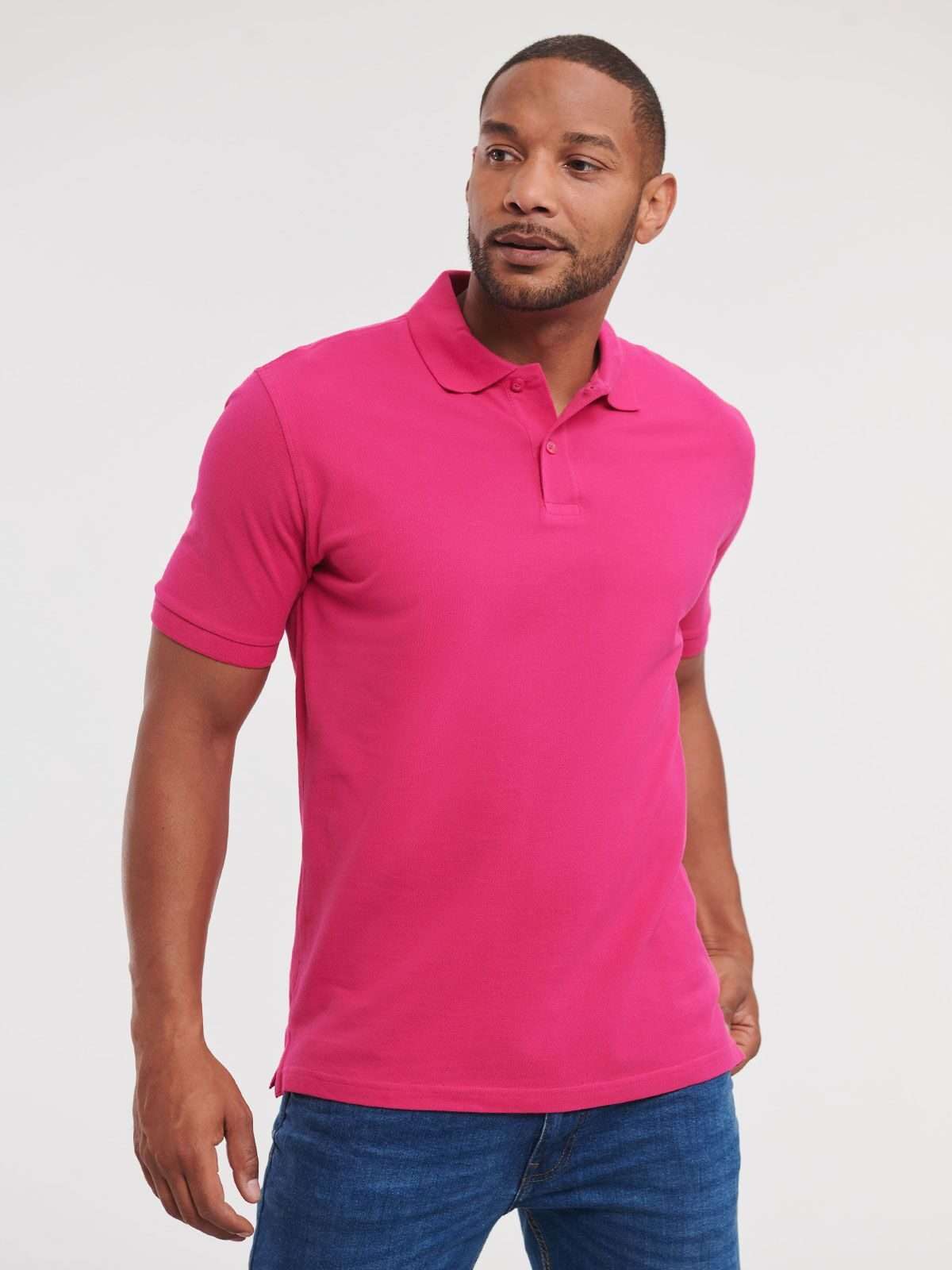 100% cotone ring-spun, piqué. Polo a maniche corte set-in, due bottoni tono su tono, Struttura con cuciture e spacchetti laterali. (White: 195 g/m²).
