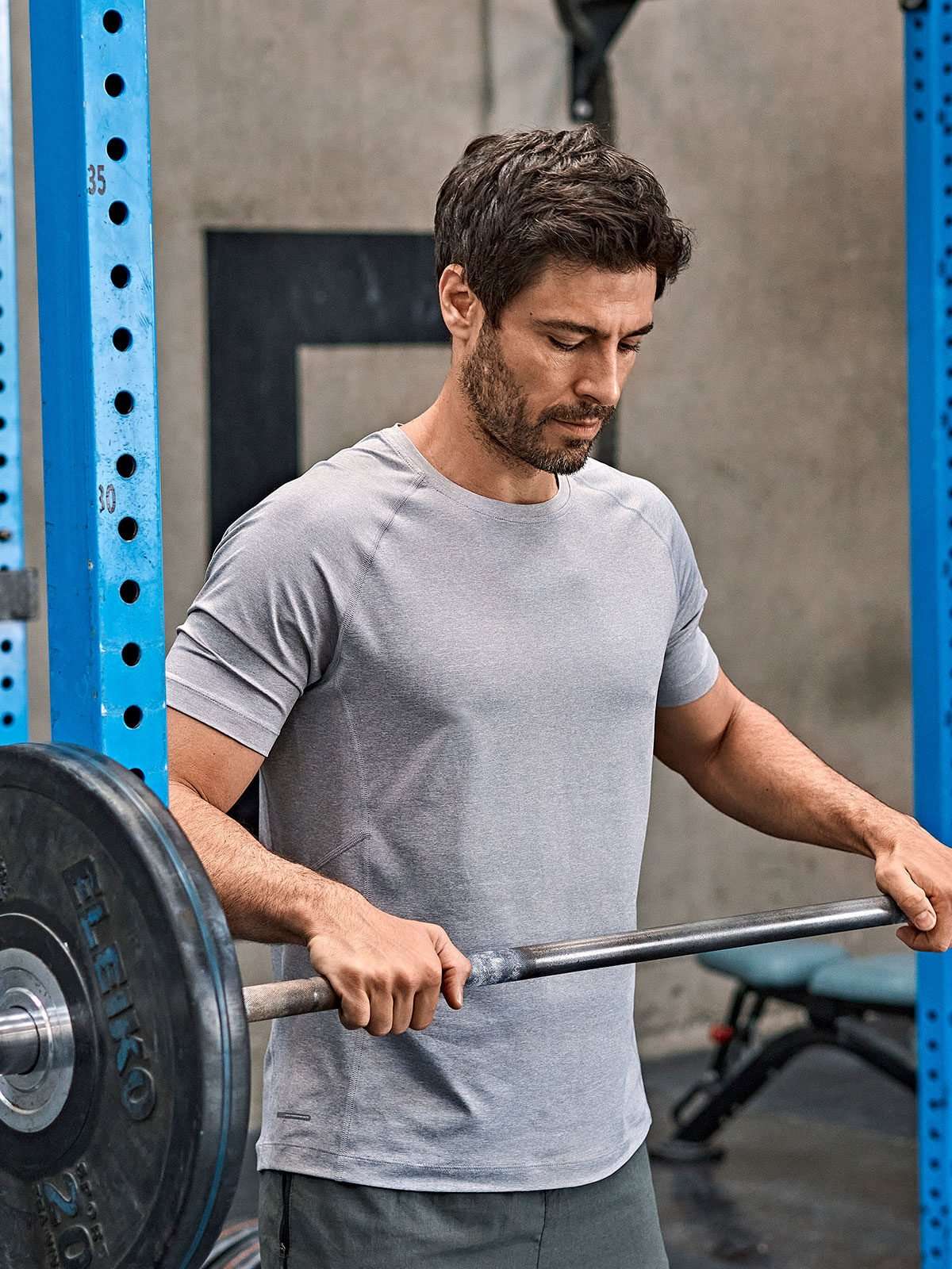 95% poliestere (tessuto CoolDry), 5% elastan. T-shirt sportiva uomo, tessuto morbido e leggero, traspirante, a rapida asciugatura, cuciture flatlock, stampe riflettenti, fit sportivo.
