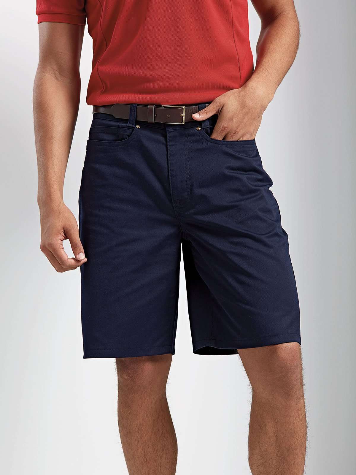 63% poliestere, 35% cotone, 2% elastan. Questi pantaloncini chino da uomo sono caratterizzati da una chiusura con zip coperta e un bottone in vita, dotati di passanti in vita per facilitare l'introduzione della cintura, due tasche laterali con dettaglio rivetto e due tasche applicate sul retro, rifiniti con un orlo a doppio risvolto, questi pantaloncini chino sono un'ottima opzione per i mesi più caldi e offrono un approccio più casual all'abbigliamento aziendale, un tocco di elastan nel tessuto dona un elemento di maggior elasticità per il massimo comfort.