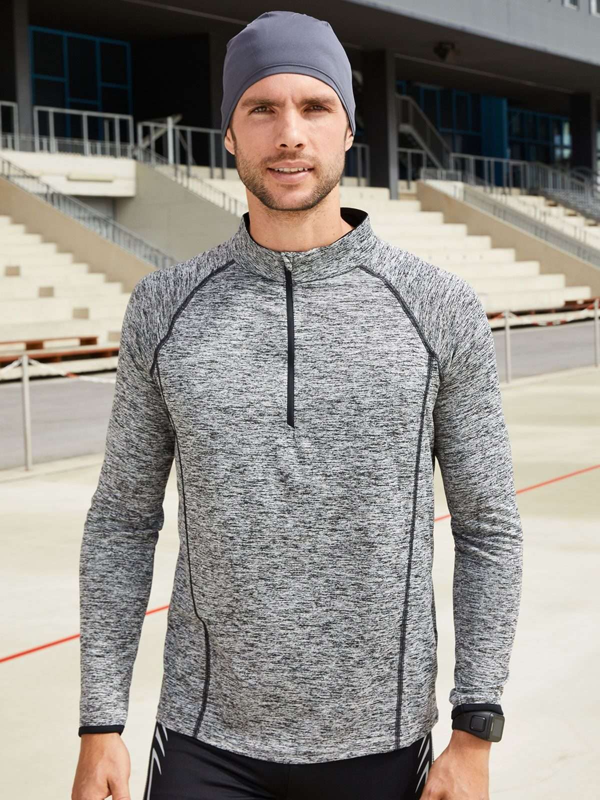 100% poliestere. T shirt manica lunga per fitness e sport Transpirante e con regolazione umidità. Asciugatura rapida, leggera e confortevole. Maniche raglan, collo alto. Cuciture in contrasto sul davanti e sul retro. Zip con protezione per il mento. Tessuto esterno (130 g/m²).