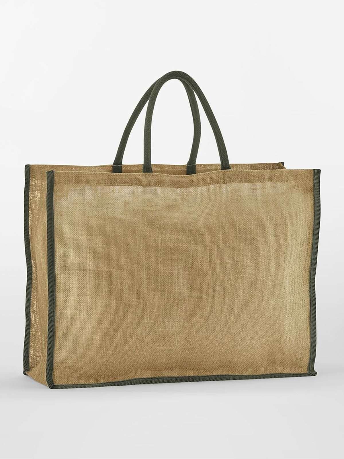 100% Juta. Shopper con manici in cotone, ampia capienza, lunghezza del manico: 47,5cm. Dimensioni: 42,5x55.5x21cm. Capacità: 46 litri. Area di stampa: 50x36cm.Etichetta strappabile.