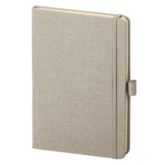160 pagine a righe; carta avorio; segnapagine ed elastico in tinta; quadranti ad angoli tondi; portapenne; chiusura con elastico; tecnica di stampa consigliata: serigrafica - UV