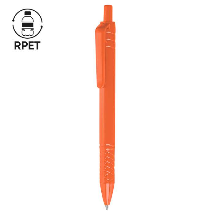 penna in RPET ; penna a sfera, meccanismo a scatto ; fusto colorato ; refill nero ; Tecnica di stampa consigliata: Serigrafica - Tampografica - UV