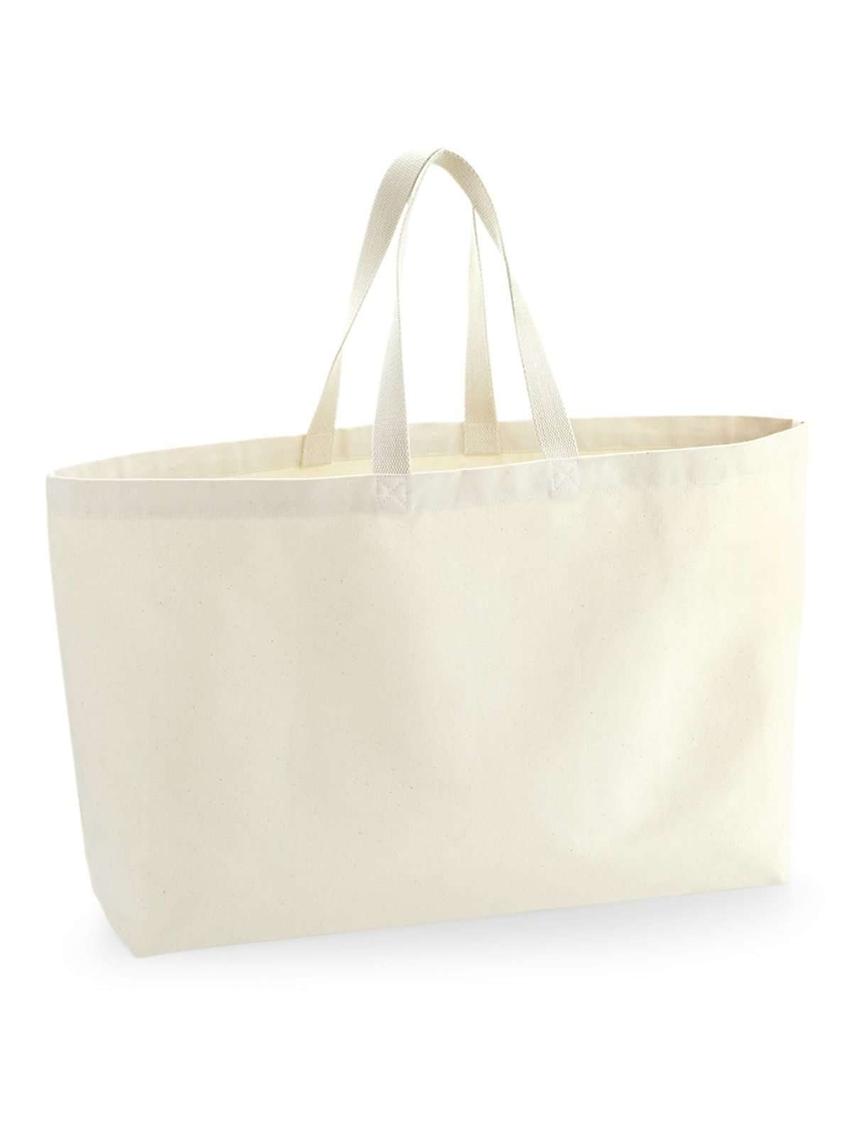 100% cotone canvas. Borsa oversize con struttura in canvas resistente. Maniglie in morbido tessuto per il massimo comfort. Può essere portata a mano o in spalla. Etichetta removibile. Lunghezza manici: 61cm. Dimensioni: 56x41x16cm. Capacità: 37litri. Area stampabile: 54x33cm.