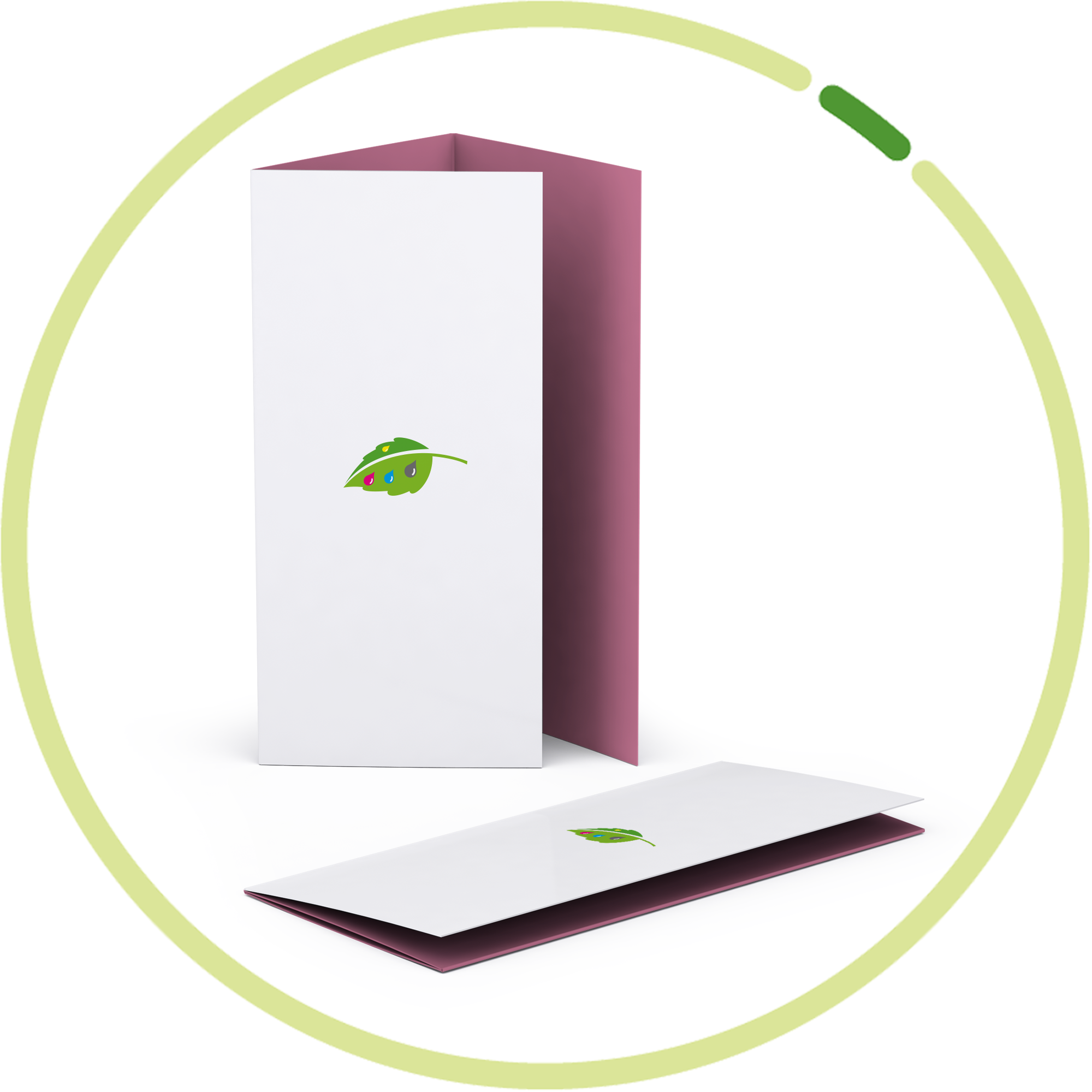 Pieghevoli in vari formati (A4, A5, DIN lungo e altri) per presentare informazioni in modo compatto e creativo. Disponibili diverse tipologie di carta, finiture di pregio e rifiniture speciali, con ordini a partire da 100 pezzi e opzioni di consegna rapida. Ideali come mini brochure, biglietti da visita pieghevoli o segnaposto, offrono più spazio e versatilità rispetto ai classici volantini.