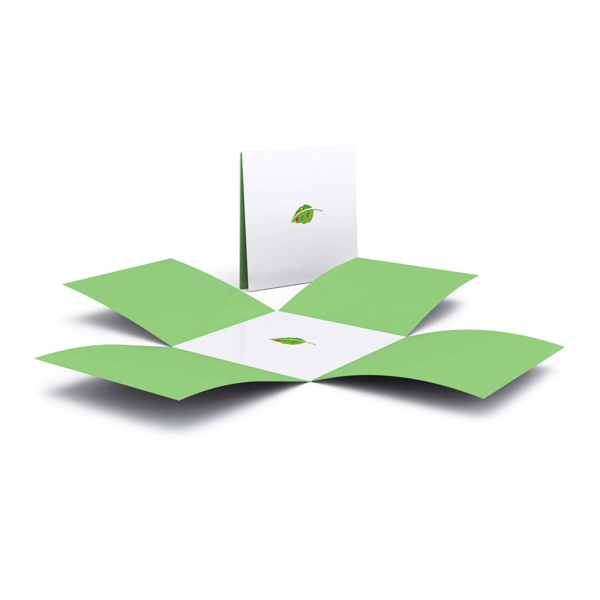 I pieghevoli con piega quadrata permettono di strutturare i contenuti in modo intelligente, perché consentono di posizionare il messaggio principale sul quadrato centrale e i dettagli sui quattro lati ripiegati. I pieghevoli offrono anche spazio sufficiente per fotografie ricercate, grafici illuminanti o dati di contatto dei partner di riferimento.formato finale chiuso 15,2 x 15,2 cmcompletamente personalizzabili con la tua stampadiversi materialirifinitura con verniciatura UV o a dispersionea partire da 10 esemplari