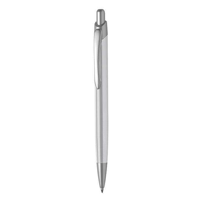 penna a sfera ; meccanismo a scatto ; corpo in lacca metallizzata ; minuterie in metallo satinato ; refill con sfera al tungsteno ; inchiostro nero ; tecnica di stampa consigliata: serigrafica - tampografica - incisione
