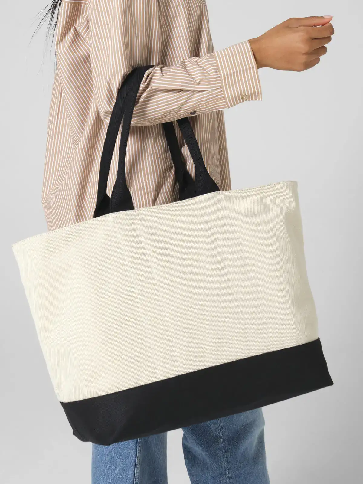 100% poliestere riciclato. Shopper dal design strutturato con vano principale e tasca interna con zip. Zip nascosta nella fodera per la personalizzazione. Dettagli in metallo dorato lucido e manici adatti al trasporto a mano o a spalla. Etichetta strappabile. Dimensioni: 42x38x20.5 cm. Capacità: 31 litri.