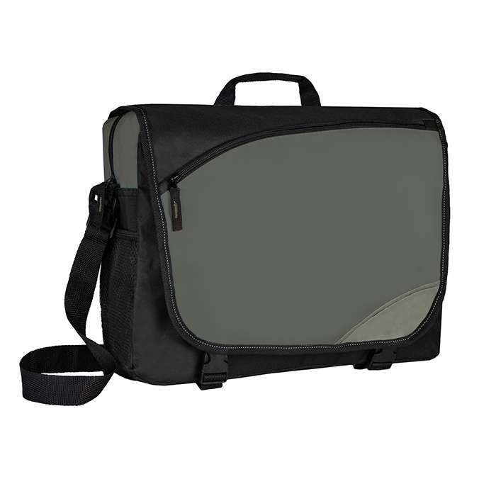borsa bicolore portadocumenti poliestere 600D; interno multitasche; tasca esterna con cerniera; tracolla regolabile e manico; tecnica di stampa consigliata: serigrafica - transfer
