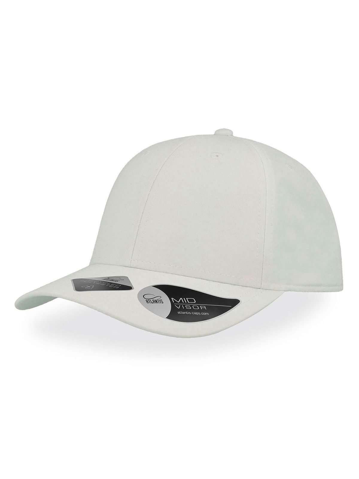 100% poliestere Twill riciclato. Cappellino a 6 pannelli, visiera precurvata, occhielli ricamati, 6 cuciture sulla visiera, etichetta removibile, chiusura in PVC.