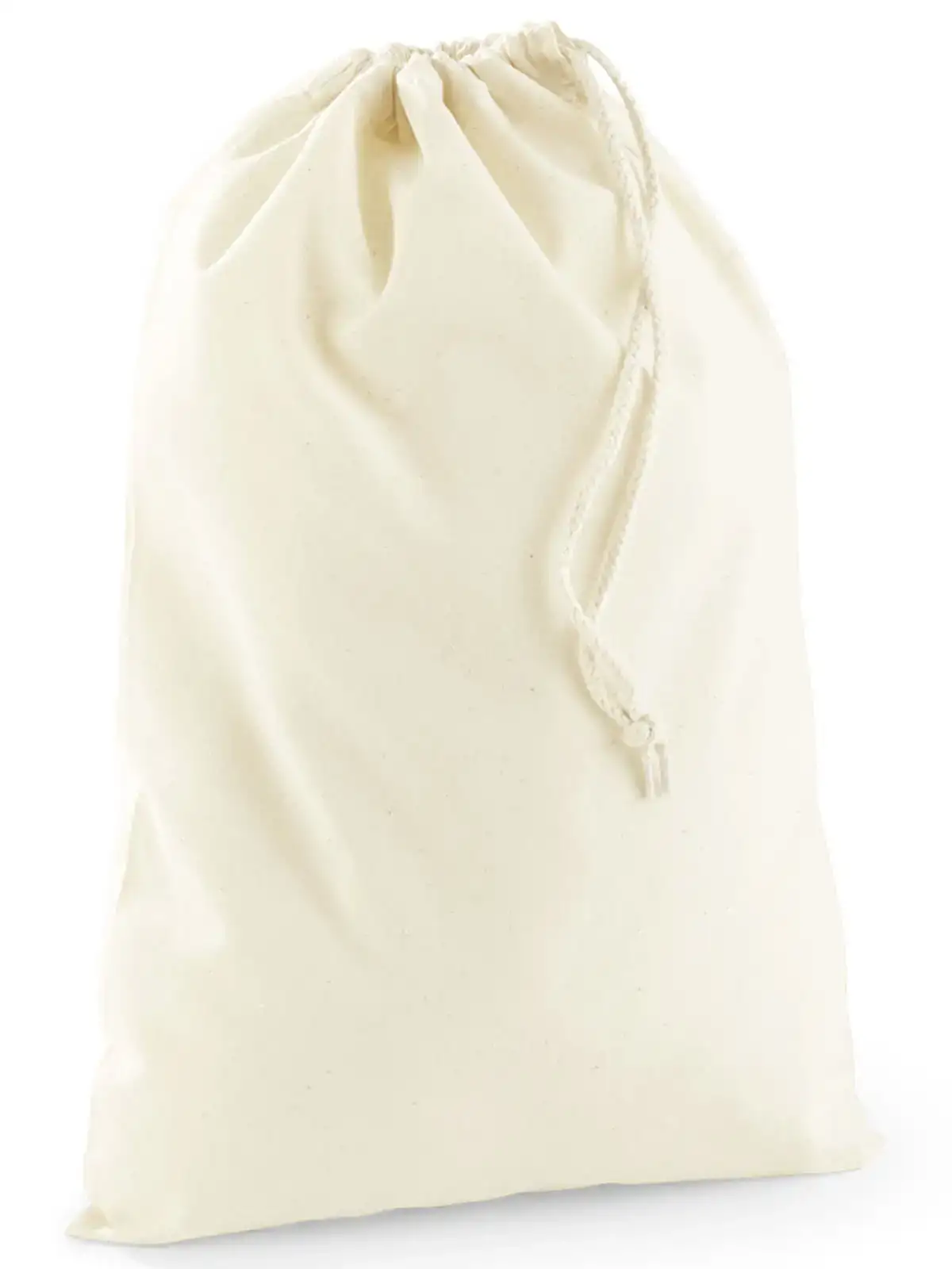 100% cotone riciclato. Sacchetto in cotone riciclato GRS, certificato da Control Union CU811033 con cordini in cotone riciclato. Etichetta removibile. Dimensioni: XXS: 10x15 cm, cap. 0,25 lt. - XS: 14x20 cm, cap. 1 lt. - S: 25x30 cm, cap. 3 lt. - M: 30x45 cm, cap. 8 lt. - L: 40x50 cm, cap. 14 lt. - XL: 49x75 cm, cap. 38 lt.